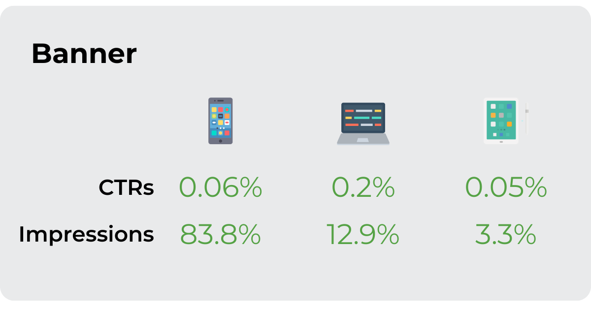 Banners are ideal for eCommerce offers and shopping events because they are a highly visually and appealing ad format that catches the end user’s eye and can easily attract more visitors to your eCommerce offer’s landing page. They can be a really impactful way to promote your offers, and they offer loads of space to come up with compelling creatives and attention-grabbing copy. Banner creatives can be static images, gifs or even videos, giving you lots of testing opportunities.