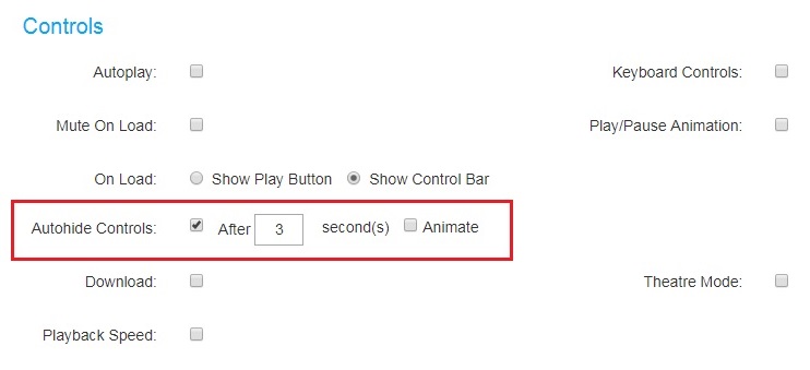 Autohide controls: This option lets you hide the control bar of Fluid Player after a specific amount of time: